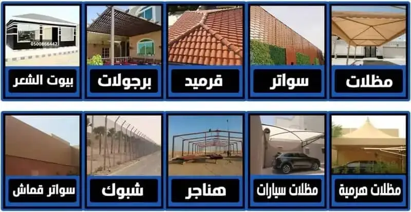 تقدم لكم حلولاً متكاملة ومتميزة تلبي كافة احتياجات المشاريع بأعلى معايير الجودة والاحترافية نمتلك خبرة واسعة في تصميم وتنفيذ المظلات والسواتر والهناجر وجميع أعمال المقاولات العامة مع التركيز على التفاصيل لضمان الأمان والمتانة والجمال نقدم استشارات متخصصة لتحديد الحلول الأنسب لكل موقع ونوفر خدمات التوريد والتركيب والمتابعة لضمان تجربة سلسة ومتكاملة لكل عميل نحرص على الابتكار واستخدام أحدث التقنيات والمواد عالية الجودة لنقدم مشاريع عملية وجذابة تضيف قيمة حقيقية للموقع وتعكس التميز والاحترافية في كل عمل