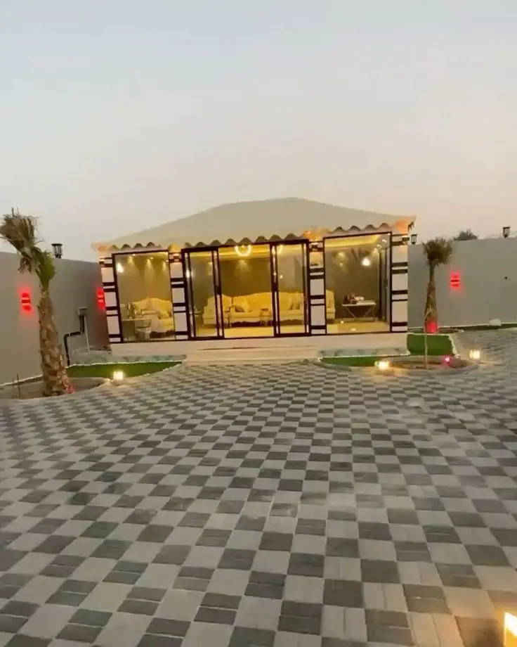 عند تفصيل الخيمة الملكية، يتم تصميمها حسب مساحة الموقع بالضبط، سواء كانت في استراحة، مزرعة، أو فناء منزل. هذا الشي يضمن استغلال كل متر بشكل عملي وجمالي، بدون فراغات مزعجة أو ازدحام غير مريح.